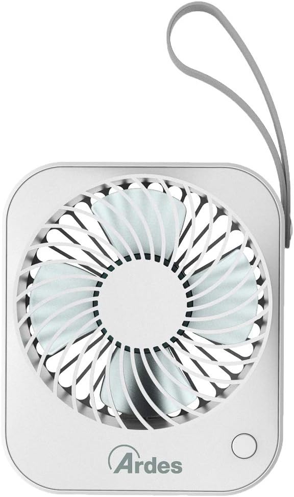 - COMPATTO E PORTATILE | Le misure del ventilatore Ardes da tavolo sono larghezza 11.2cm, profondità 4.3cm e altezza 13.2cm; peso 260g. La Batteria è ricaricabile con 2 ore di autonomia, nonché sostituibile. La maniglia all’estremità è in eco-pelle, morbida e comoda.