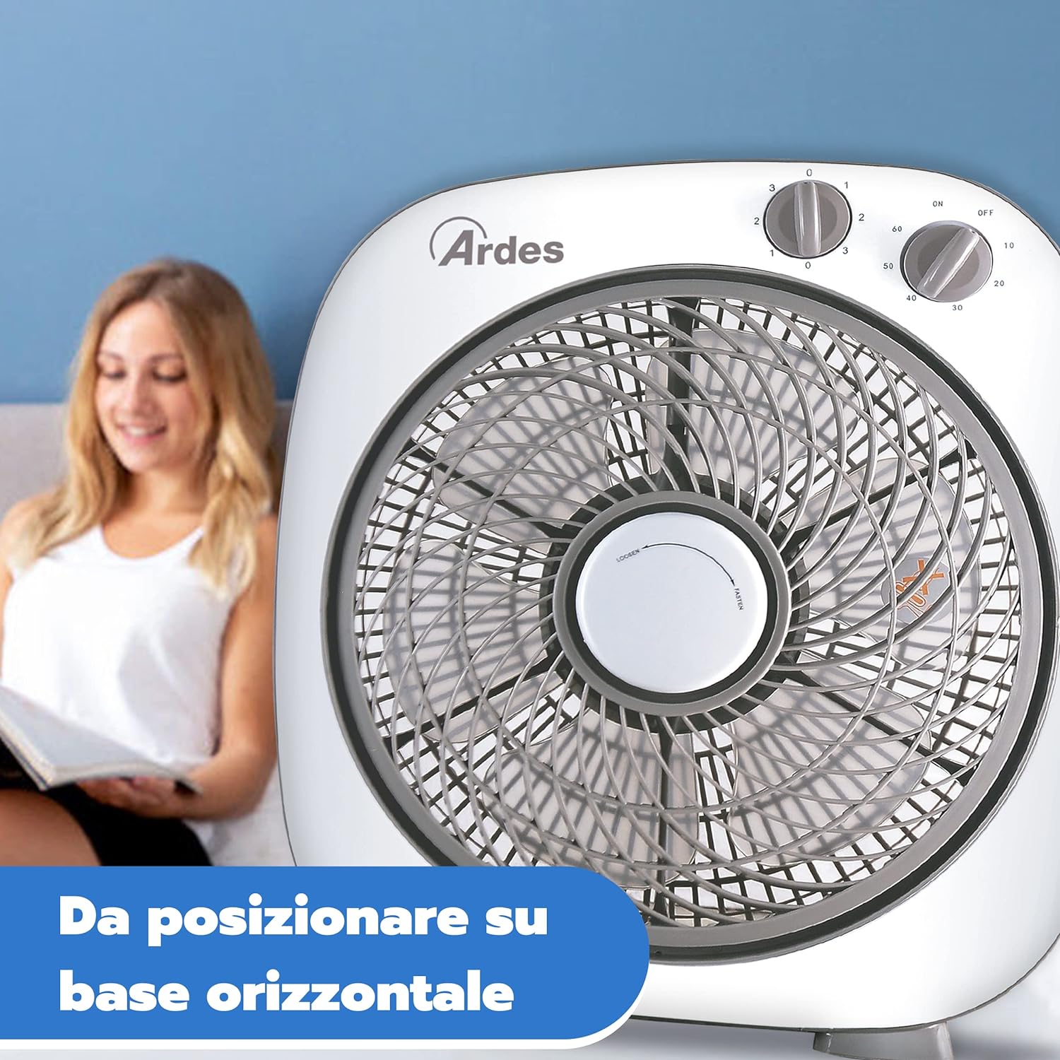 - MODALITÀ DI UTILIZZO | Il ventilatore da terra dev’essere prima di tutto posizionato su una base d’appoggio orizzontale. La macchina del vento Ardes è dotata di un timer per regolare il flusso del vento in base alle esigenze quotidiane e stagionali. Perfetto per rinfrescare l’ambiente d’estate e offrire sollievo durante il riposo, lavoro o momenti di svago.