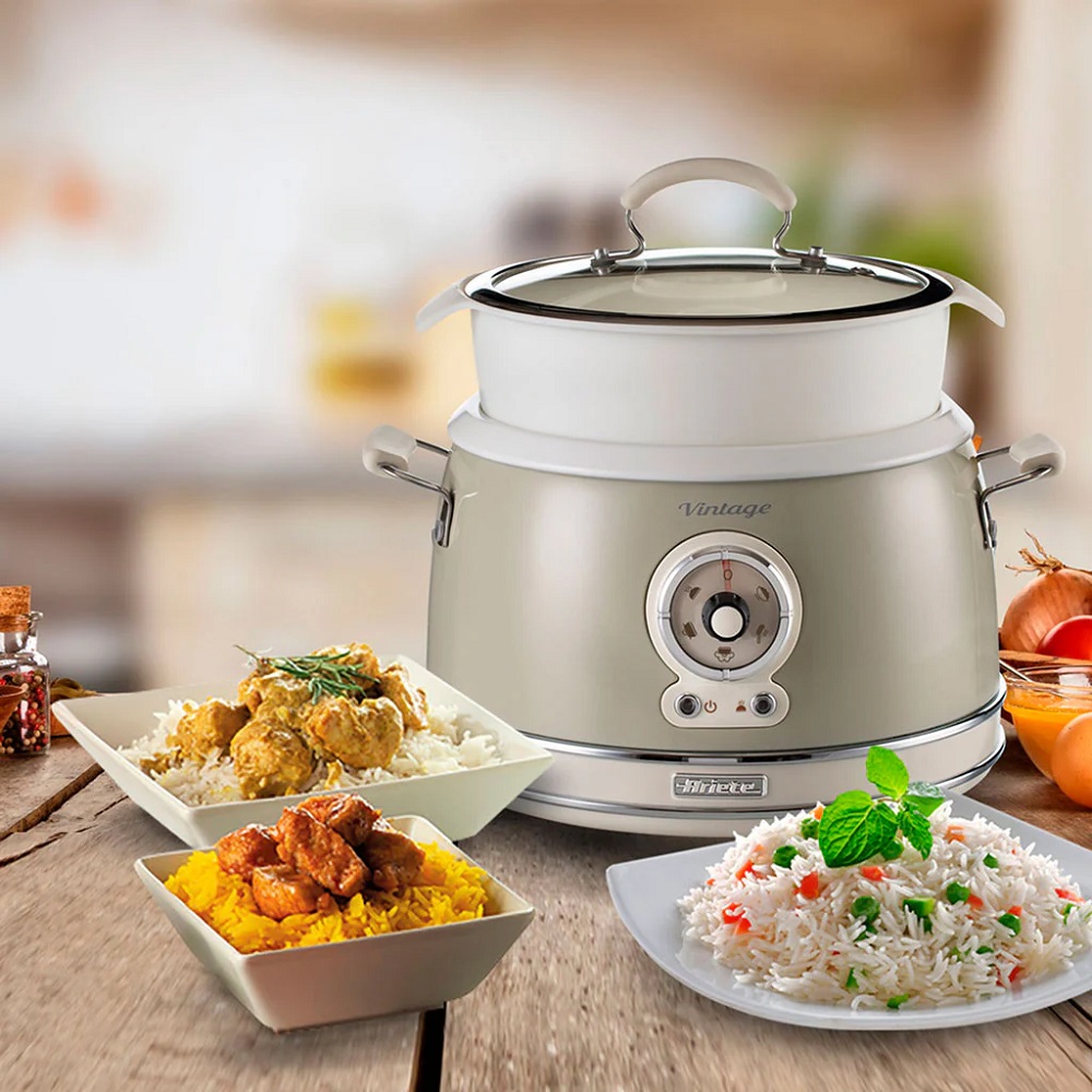 - Con Rice Cooker di Ariete, la linea Vintage si arricchisce di un cuociriso perfetto, non solo per cuocere il riso alla perfezione, ma anche tanti altri piatti, scegliendo tra la cottura sauté o la cottura a vapore