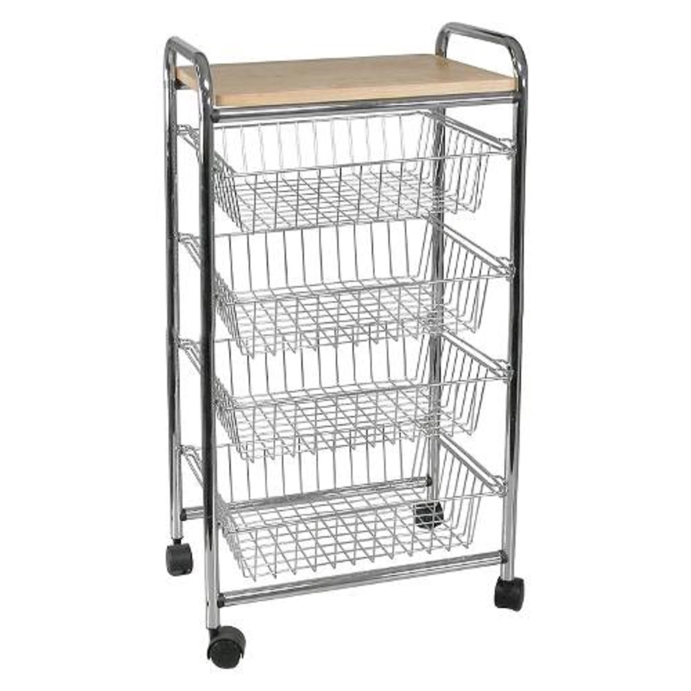 - Descrizione: Carrello cucina cromato con 4 cesti estraibili e maniglie in plastica