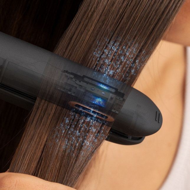 Le particelle nanoe idratano i capelli e li aiutano ad avere un aspetto liscio e lucente
