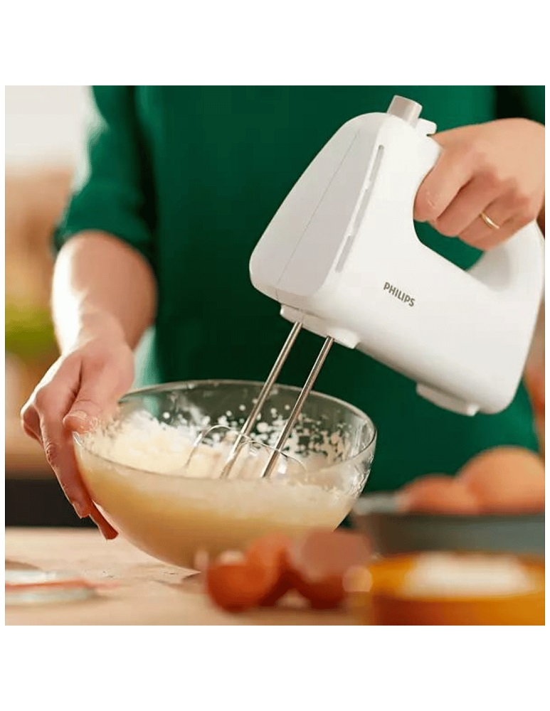 - Philips HR3705/00 Sbattitore elettrico, 300W, 5 Velocità + Turbo, Coppie di fruste e ganci, Bianco, Leggero ed ergonomico