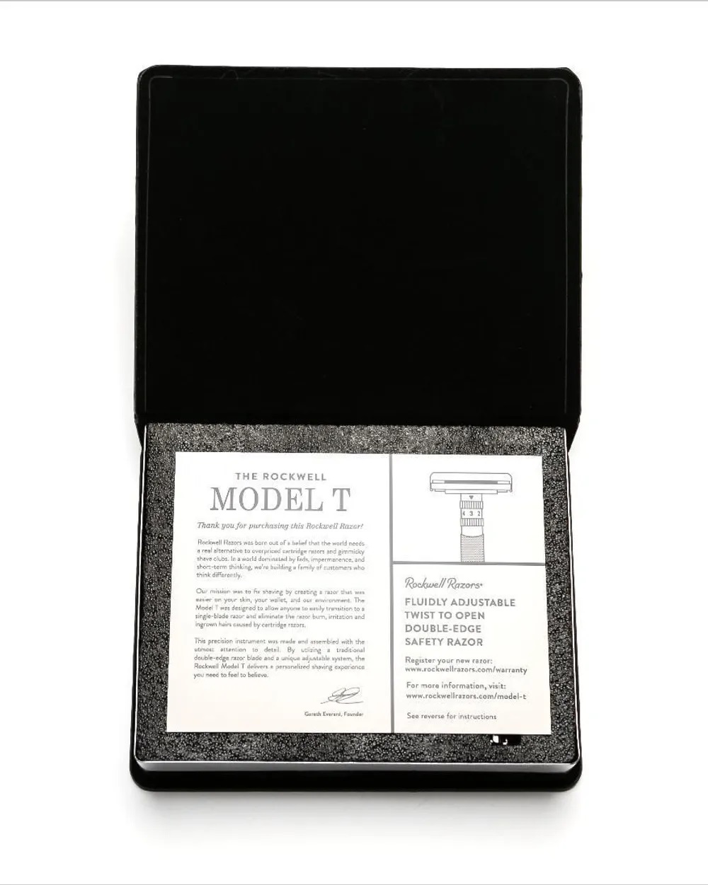 • 1 rasoio di sicurezza regolabile Rockwell modello T nella finitura desiderata